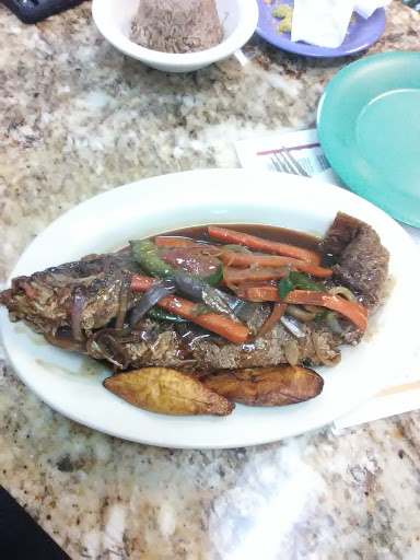 Excellent jerk chicken, brown stew chicken as well as two kinds of beans and rice. Hit this place after Rihanna concert. Very good home cooked food.
