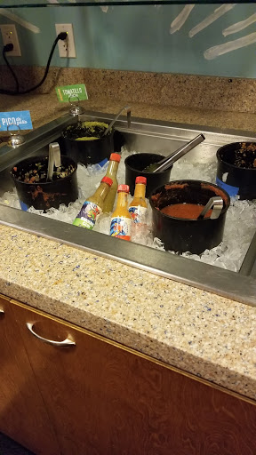 Had two breakfast burritos. Thought they were joking when it says there are three scrambled eggs in them. Two was a bit too much but I finished. Pretty good, asked for cilantro. Would be even better if the burritos, my friend had a blackened shrimp burrito, had beans. Beans and burritos are a perfect match. Overall, good food, like that they have a salsa bar. The tomatillo salsa is really nice.
