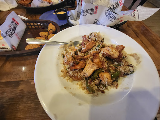 When you cant even do your "signature" shrimp, or french fries right, you have problems. First of all, this is a cool place.... to hang out or watch a game. If you want to eat, then stop somewhere before you get here. The shrimp, which are intended as a rip off of Bang Bang Shrimp are horrid. All breading tossed in some Asian chili sauce, and "lightly" (very lightly) drizzled with their Hurricane sauce. Im talking maybe 1/2 teaspoon, seriously. They were so bad, that I decided to test the kitchen before ordering an entre, so I ordered the "hand cut" Parmesan Garlic Fries. They were cold and wet. WET??? Yes, apparently they toss the french fries in BUTTER! Are you done laughing yet? Yes, butter. Very pissedoffedly I asked for the check, told the bartender the food sucked, and just a few short minutes later I was happily driving away from Hurricanes looking for a real restaurant to have dinner. Too bad cause they are in a primo location in San Marco. Guess I should have ordered the wings, cause nobody can screw up.... wait a minute, if it can be done they will do it here. Like the guy said below....."ITS A CHAIN!"