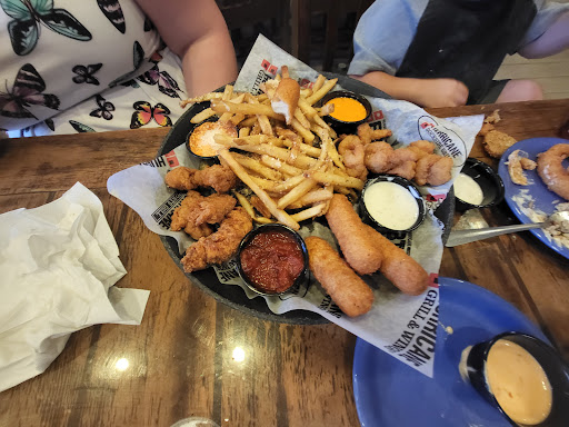 We go probably once a month. It is your typical sports bar atmosphere decorated in the beach life and hurricane warning. Inside and outside seating. Wings are pretty good with a lot of flavor choices. One of my wife and Is favorites is the lime chicken salad. Excellent.