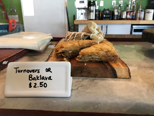 I have been wanting to try this new place but could never make it before closing time. Finally did and it was so worth the wait! As soon as you walk in it is very warm and inviting. Instantly greeted in a relaxed euro cafe atmosphere. Beautiful bookshelves around with lots of additional products to purchase as well as pretty faux plants. There is a very nice big comfy chair area as you walk in and plenty of seating. I ordered the Kahve Panini (similar to a caprese but with pesto) and a chicken panini (loaded with chicken, peppers, onions, pesto, and cheese..whats not to love!) The ingredients were all so fresh, paninis piled high, and the pesto is to die..you could eat it on a bumper! So friendly, the chef was out and the Owner made our lunch for us. He could not have been nicer or more accommodating, even made my hubby a chocolate croissant as they were out! He scarfed it right down as I did my ooey gooey so soft and fresh baklava. So glad to have them in the neighborhood! Next time breakfast and coffees.