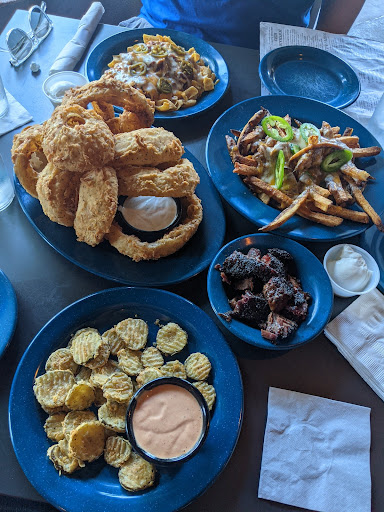 Best bar b que shrimp appitzers lots good food everything is so good flavor atmosfere is good lots of familys couples talking the food is awesome u gotta taste to now fast service bands play in there some nights great place to eat an hang around for desert an drinks must for couples or family friends to for all