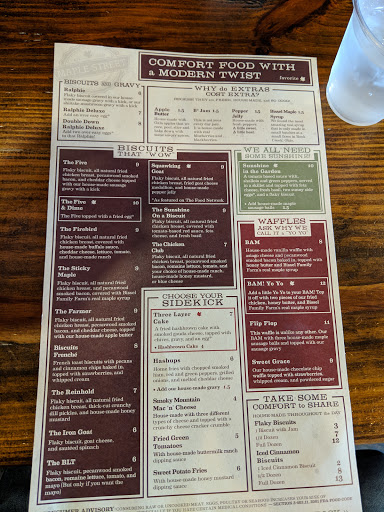 Made from scratch, made to order, and cleary made with love. If youre thinking about going, just do it and thank me later. With dozens of delicious variations competing to become the best biscuit ever, I chose The Ralphie Deluxe with sausage gravy topped with an egg over easy, a hashbrown cake ooozing with Gouda, and a fresh cup of maple coffee. My breakfast partner in crime chose The Iron Goat, a flaky biscuit topped with sautéed spinach and goat cheese; he also couldnt resist the Gouda hashbrown cake and a side of fried green tomatoes, and hot cup of light coffee. The first bite changed my entire mood from grouchy to savoringly happy. The last bite was challenging as the goodness is piled high each plate, bit stuffed or not, I needed that last bite. The fact that Im visiting from California is probably for the best otherwise Id be there like clockwork every weekend. The staff is friendly, helpful and efficient...lines are long, but they move fast and are totally worth it. Be prepared to Hawkeye and negotiate for a table as its fully style and guests seat themselves.