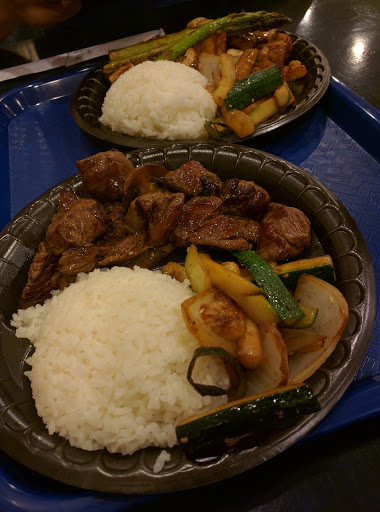 The food here is really good. My favorite is the hibachi chicken with veggies. Also, their noodles are my favorite, hands down. The only thing I could do without are all the unnecessary signs and rules. Signs about sauces. Signs about discounts. Signs about cups. It comes across as though they are stingy.