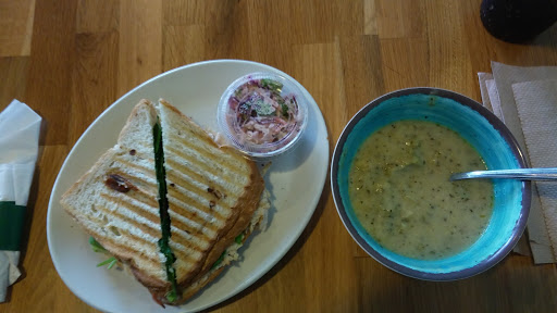 Really enjoy the food here... Lots of interesting options. The peach panini is very good. Be aware that during peak times service can run slow. Only other downside is that drink options are only a limited selection of bottles and cans.