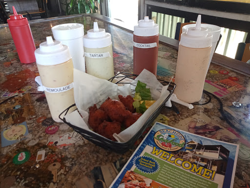 TOURIST TRAP! Read our review on Trip Advisor. Sad little wanna be seafood shack at fine dining dinner prices!!We forgot about this place and decided to revisit. We chose to eat outside and when our food arrived so did the flies! You have to put this place in perspective, they charge fine dining prices AND DO NOT DELIVER FINE DINING! Its a seafood shack type of place. I recommend they stick to lunch. I had my heart set on Oysters, not at $15 a dozen. We ordered wings and gator tail to start, my husband said the wings we very good. And my gator tail was very CHEWY! Seared Diver Scallops were tasty, PORTION TOO SMALL for the price, 6 for $29 when you take into account the SAD SIDES they served. The Grouper was CUT in a slice fashion and way TOO THIN for an 8 oz piece (in my opinion it was less than 8oz.), I had mine grilled, a little over cooked due to how thin it was sliced. I would recommend they cut it properly so that it is a thick cut, which is they way grouper is served. This slice fashion really stuns me, I have never seen Grouper sliced thin! Were talking a $22 Dinner, not a sandwich! Someone needs to learn to cut fillets! No issue with the baked potatoes. The Hush Puppies Dry, tasteless and are nothing to brag about. The garden salad was a big disappointment, some packaged shredded cheese with a few sad tomatoes a slice of onion on a tiny bowl of greens. Blue Cheese dressing, a low end brand. All in All I feel like its a TOURIST TRAP! Definitely not where locals are dining for Dinner. 2 Appetizers, 2 Dinners and 4 Beers with tip $115 plus change!! OVER PRICED!! Shocked us! We could have spent less and ate better on china with silverware at the other end of the beach! Without the flies!! Your number one recommendation is to tell the server and send it back ! WHY CANT YOU GET IT RIGHT THE FIRST TIME? In fact I do not believe you actually served me the Grouper I ordered and paid for! Stick to what you know, lunch!
