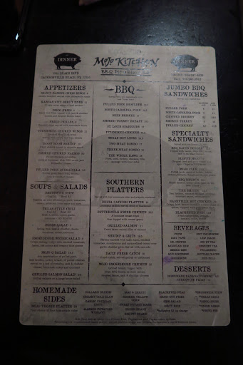 Good place with a decent menu. BBQ pulled pork is great. Good selection of about 5 or 6 BBQ sauces to choose from. Staff is attentive and kind. I look forward to eating here each time Im in Jacksonville Beach.