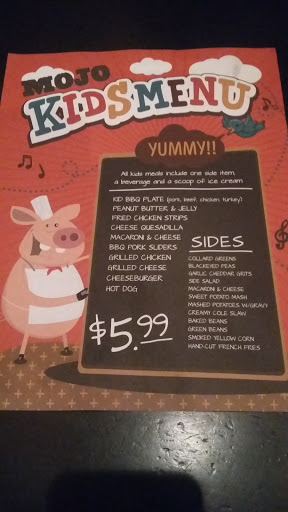 I love Mojos BbQ! Its awesome flavor and the take out is just as good as eating in. I hope people are back to being respectable and learn how to communicate. Im an adult, if there wasnt anything I liked about my food, in the past, good ole days, we spoke to the Manager instead of trying to hurt someones business that they work hard for by giving a one star. Really? ...Peoples reviews should only be valued if that person is of sound mind, character, have morals and integrity. If not, does it really matter? Nah.