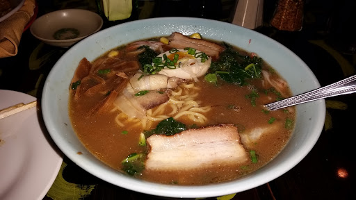 Nommy nom nom in a space way too large for its clientele count. At 6.30p on a Thursday, the place was empty. The restaurant has three large sections and there was not a single customer, hostess or server in sight. After a few moments, a hostess came out and seated me. Still nervous from the dark road on the way here and this empty restaurant, it was a relief when a table of six was seated in my section. Annnnd the food. Strongly recommend the tuna crisps with the cold vs hot and soft vs crunchy textures. Its topped off with a little spiciness. Literally. With a slice of jalapeno on top. Meh onigiri; great rice but slightly dry salmon. Now... the whole reason I came... tonkatsu ramen. In a city with a low real-Asian-restaurant to take-out-place ratio, I was hoping/waiting/wishing I could sincerely say there is a Japanese restaurant. And now I can! Broth was lick-your-lips tasty but not a lot of depth. Noodles are the perfect amount of chewy carby goodness. The soft boiled egg was golden and tasty. And it was cold; do they all have cold eggs? Kushi katsu had the perfect crunch and delicious veggies on a skewer. All in all, I left full and happy to find a place that I can try several things on the menu written in English and Japanese. Also cant wait to try the sushi!