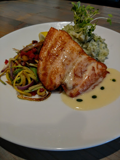 Absolutely underwhelming service and food. The atmosphere is great and its nice that Abacoa has something a little more upscale, but my entire table of eight was disappointed. We had a pregnant person trying to dine with us and asking about the cheese on the charcuterie board to see what she could eat and the server simply replied, "Yes, isnt the cheese just so great?" Thats not what she was asking or why she was asking it. The entree portion sizes are ridiculously small. The seared bronzini said it was served with "herbs" and coconut rice and ONE LEAF came out on the plate as garnish-- there was maybe four spoonfuls of rice. Thank God we ordered apps. Back to the charcuterie board, you would think for $19, the platter would have meats and cheeses on it which is normal--however, if you want cheese, youll have to fork over an additional $16. I wont be recommending this place to anyone.