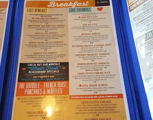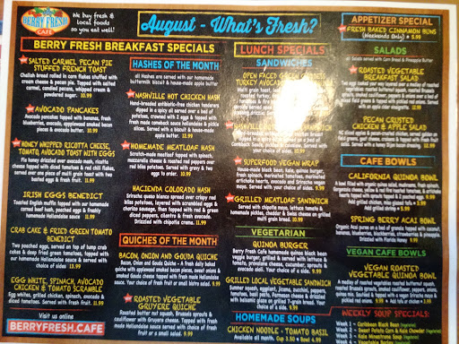 Berry Fresh became a quick favorite of mine. The staff was pleasant. The restaurant was clean and the food, delicious. When I met with girlfriends for breakfast, Berry Fresh was always my suggestion. But for some reason, things have begun to change. The staff seems a bit frazzled. My guess would be management treatment being less than supportive or appreciative. The food has become a disappointment. My favorite, the bacon/avocado omelet has fallen off the good list. In the beginning, it came with big slices of bacon and slices of avocado. Delicious! Now, however, it comes with a few avocado pieces, diced, not sliced and instead of nice bacon slices, it has bacon bits and the eggs are rubbery. I was there this week with friends and after two bites, I couldnt eat more. So disappointing! The prices didnt go down but the quality certainly did! Itll be difficult to come again. Its a shame that places begin big and then when they get their clientele, they cut corners. Not good business. Ill no longer recommend Berry Fresh. Just very disappointing! met witBerry Fresh was