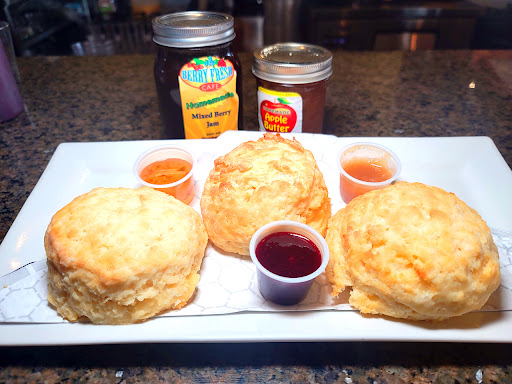 Was up in Jupiter for Artigras and it was my good fortune to stumble onto berryfresh for the first time. I checked in online on Yelp app, and was immediately sat upon arrival at restaurant. The place was jam packed, with delicious looking food being delivered to happy patrons. They serve breakfast all day, and I ordered corned beef hash my companion ordered the turkey & sprouts wrap. We both enjoyed. I also was able to try their fresh homemade biscuits with homemade Blackberry reserves. Cant wait to go back and try the rest of the menu. They also gave me a $5 gift card for my next visit as this was my first time.