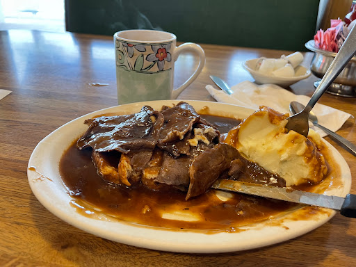 Visiting from New york....was craving breakfast Diner food. Saw this place had lots of stars and great reviews. Got here at 12:15.....NO BREAKFAST!!??? Never have I EVER been to any Diner that doesnt serve breakfast all day!..they stop at 11:30. I was SO DISAPPOINTED bc they dont even advertise that on their website! I ended up eating a roast beef open faced sandwich LITERALLY drowned in gravy. Mashed potatoes were the only upside to the meal.