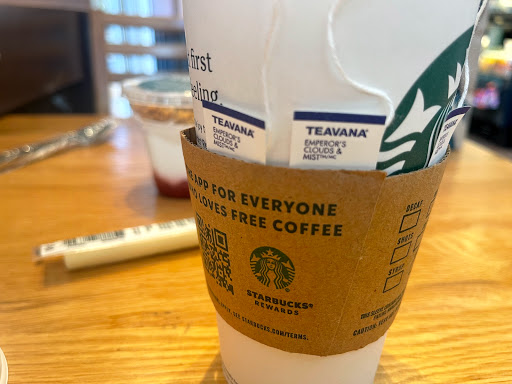 By far the best Starbucks i have ever had the pleasure of stepping foot in. Its location makes you feel like its a secret only a selected few have the privilege of knowing. And the chemistry between the partners its just amazingly quirky. Simply a breath of fresh air. One which cannot go unnoticed or unapreciated. I will most definitely be coming back, as i cannot get enough of this little slice of heaven.