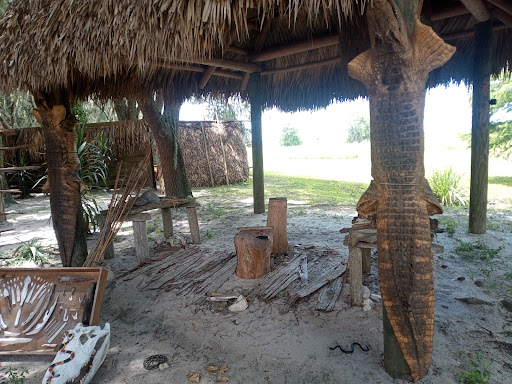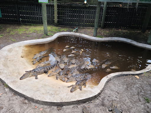 This is a fairly new place located in Southport Park in association with Boggy Creek Airboats. While the building has been there for some time it has only recently been converted into the restaurant (I remember it being a gift shop before). My wife and I went in for Lunch today and found the place with a few other diners, so not crowded but a pleasant atmosphere. Country music on the sound system and it was a warm place of civilization on a cold and blustery day. We were quickly seated and Natalie our server took our drink orders. My wife had coffee with honey to sweeten it and I had a Diet Pepsi. Natalie left the menus and went to deal with that. We looked them over and discussed out choices. My Wife chose to have the Fried Catfish with two orders of Collard Greens as her sides. I chose the 3 Meat Smoked Combo and asked for ½ rack of Ribs, Beef Brisket and Pulled Pork. My sides were Green Beans and Mashed Potatoes. In a first at a restaurant Natalie asked if we wanted wood or plastic flatware. We decided to try the wood. It seems that the plates and flatware here are made of a biodegradable bamboo which I think is a neat idea. Much less fooling around for the dishwasher and is made from a renewable resource unlike plastics. Curtis, the Manager at the restaurant made a stop by the table and checked on us. I found him quite personable and pleasant. I also saw him busing and cleaning tables. They use brown paper as a table covering and the wait staff write their names in crayon on it when they introduce themselves. Once our food arrived in ample portions (I told Natalie wed need take away boxes immediately.) we set to. My Wife was very pleased with the catfish, properly fried and not greasy at all, she also loved the collard greens. I tried the green beans first and they were excellent. So many places I have been the sides are an afterthought, clearly not here. Tasty and fresh. The mashed potatoes were of a red skin variety, I could tell because they were still somewhat lumpy and had the skins on, just the way I like them! None of this pureed to death or reconstituted mush here. When I am trying a place for the first time I always try the meat without adding sauces to it first. The Pulled Pork was tender and well smoked, the Beef Brisket juicy and very tasty and the ribs really didnt need any other sauce (that didn;t stop me from trying them of course!) I tried several of the sauces on the table and will discuss three of them. First is the Mango Habanero sauce. Very flavorful an excellent blend of sweet and hot. While I am not one who normally goes for the hotter sauces this is one Ill be trying again. The Texas BBQ Sauce had a nice tangy flavor but the one I really took to this time was the Hickory Sauce. I dont often hand out a five star rating, but this place is definitely on that list. We will be back often and if you are in the area you should absolutely stop by. Better yet make a day of it and go for an airboat ride, listen to Taylor the Gatorland employee who talks about the native wildlife and listen to a story or two from the Native Storyteller in the village.
