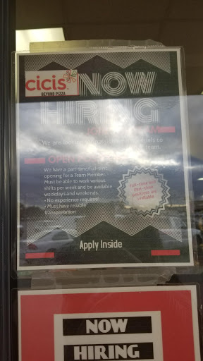 Cicis is pretty good for a poor hungry college student. Not too expensive and you can eat till youre full. Theres an arcade in the back as well. They replace the pizzas at a timely basis and the place is pretty clean. Workers were also very friendly. Notably : Chicken Bacon Flatbread was pretty awesome...might be because I was hungry...might be because it was fresh...who knows. Didnt get a picture cause I ate it all <3