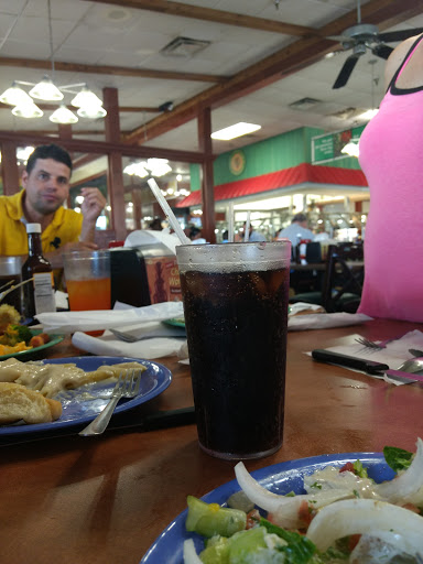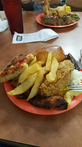 We were so sad that we didnt try this place until the end of the holiday, as we could have eaten lunch here nearly every day. For $7.99 each we had our pick of limitless popcorn shrimp, fried chicken, bourbon chicken, bbq, pizzas, fish, veggies, rice dishes, pasta dishes, soups, salads, coleslaws, breads, fruits and desserts with all the toppings. It was all fresh and hot, and was discreetly tended to by the staff. We all ate completely different meals, and there were no complaints...just yum sounds. The plates (plastic) are given to you in a stack so you can have plenty of refills.. the old ones are taken away by your waitress. The staff were friendly and ready to top up your drinks, but didnt intrude on your meal. Coupons for money off your meal are available all over the place, and if you take your receipt into the store next door you can get a free little gift too.