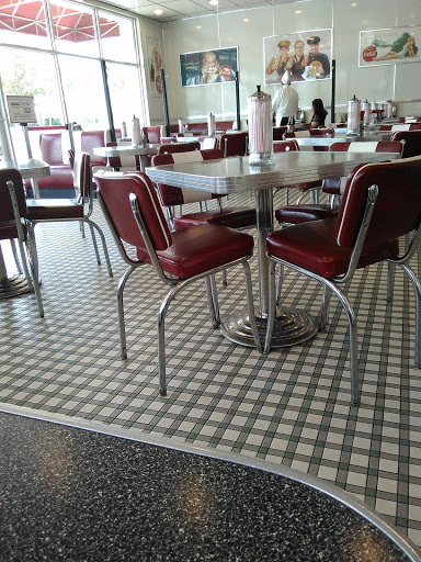 A national restaurant set in the 50s. Friendly service with family friendly atmosphere. They have the best milkshakes in town, and serve delicious greasy burgers just like old times. I like the fact when you receive your shake they give you the rest that was in the blender which is very good for those who likes good portion size. The waiters/waitresses and cooks also dress in 50s attire. Old Coca-Cola ads also adorn the walls. Only downside is the price but other than that, good shakes in a clean 50s style restaurant.