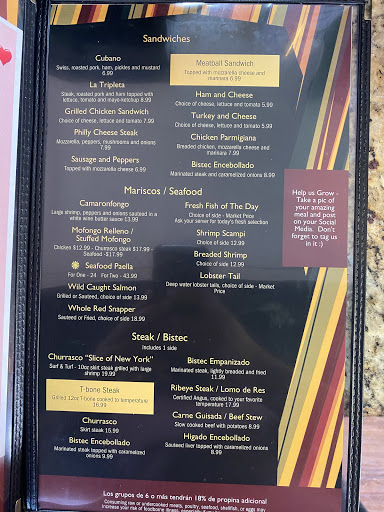 As soon as we walked through the door we were told to sit anywhere. We asked if there were highchairs and the girl said yes, we proceeded to pick a table to sit at but the only one that looked clean was wet so I dried it and when I turned around the girl that we asked for the highchair had walked behind the counter leaving it up to us to walk to the back of the restaurant and get one. When we started ordering beverages I felt rushed. When we finally ordered food we had a hard time understanding what the girl was saying, she spoke fast and low. Then food came out and they brought all the food at different times so we all had to wait for each others food to come out. The plates were not handed to each person but placed in front of one of us to had to the other. My grandsons pizza was soggy and greasy. My food which I ordered from the menu came from the food that was already prepared which while I was ordering the girl kept on looking to see if there was any, my daughters meat was marinated in too much vinegar and my husband who asked for mofongo with mojito instead got broth with his mofongo. Needles to say we have gone to that restaurant for years and ordered take out, we will not be doing either one again. I guess if we want good food and good service we need to drive a lot further. Need I say anymore?