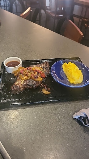 Huge disappointment!!! We had visited this restaurant back when it was American Q and we were so happy and pleased with the overall experience! We loved the table side meat sampler they had and we recommended to everyone we knew. I wanted to surprise my husband with a nice restaurant so we travel all the way to Orlando to find out that American Q was closed and that their menu is 100% different. We decided to give it a try. My husband ordered the ribs and they were good, I ordered the NY steak and it was bland!!! I can honestly say we would have had a better steak meal at the nearby Longhorn Steakhouse. Theres NOTHING unique about this restaurant anymore and now there are simply and overly priced burger + steak restaurant. Also they had heavy rock and metal playing in the background!!! However, the staff was very nice and the restaurant very clean!