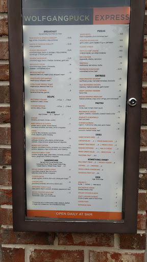 Tried the chicken sandwich. It was edible however at 14.00 it should have been made fresh that day. When I questioned the date sticker, I was told it was made the day before and was not expired. Actually you could have gotten a better sanwich at a gas station. My husband had the meatloaf sandwich. It was very dry and all bread. Very disappointed in the quality and the reputation of Wolfgang Puck . Will not be going back.