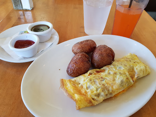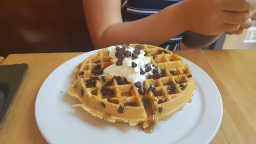 Asked if advertised board was real maple syrup. Was told yes. Was not, cane syrup or similar. Food was cold and got colder because of air conditioning. Music was pop and loud. Not esthetic ally pleasing or palatable. Told waitress about syrup no response or help. Had get my own coffee but wife had water brought to table. Asked by hostess hoe everything was as we recvd food. Never saw her again. Potatoes were unique whole brown but not tasty. As I went to get my coffee I had to sidestep for a waitress with nothing in her hands on a mission with no respect for customer and patron. Food was overpriced for what you got. But to be expected at a tourist location. Chairs people moved on floor were very loud and sqwawking, picky maybe but customer service and comfort is what will remember.