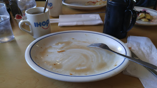 shouldve known from minute drove into parking lot ihop guy telling me I was parking stupid not to park where I was but over on grass.. hardly anyone in restaurant but took forever to get seated and get our,drinks and order. not like they were short staffed 11 people working. then the food came undercooked scrambles eggs gravy right out of a can,not at,all like other ihop s Ive ate at skip this place