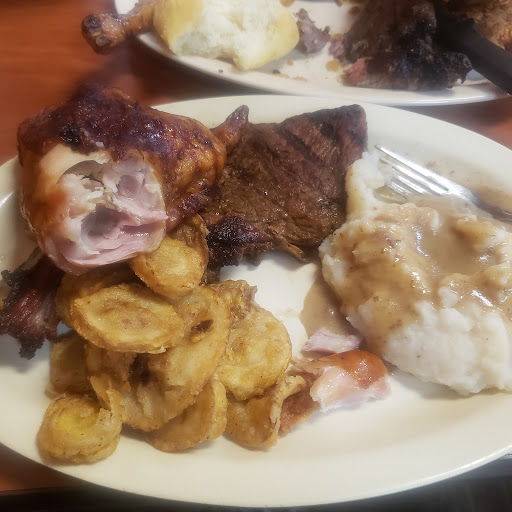 This is the absolute best place to eat if you love southern comfort food they had steak and gravy and chicken livers and boiled cabbage everything southern and the best sweet tea our service was ok she did keep our cups filled and plates moves we ate to much but will be back when in town