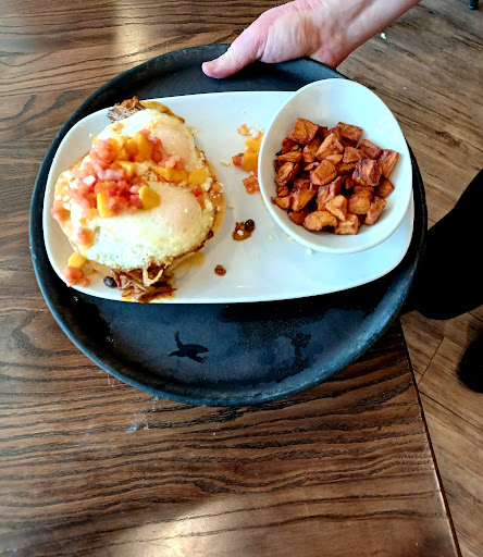 VERY DISAPPOINTING!! After being excited to have another good breakfast place in the area today was my first chance to eat at this restaurant. The atmosphere is great, the restaurant is clean, modern and nicely furnished with many options for seating. My waiter was personable, attentive, and kind but that is where the complements end. I have never felt the need to leave a comment about a restaurant before, but this was such a disappointment I felt compelled to share. The food was incredibly expensive for what you receive. I order the Eggs Benedict $14.99 (traditional version), I ordered fruit instead of potatoes and side biscuit ($1.99). I asked for the biscuit to come out first which it did. The biscuit was cold and the bottom of the biscuit was soaked with water or something else. I thought there is really nothing worse than a cold biscuit, I found that a soaking wet cold biscuit is worse, much worse. The Eggs Benedict tasted fine but the Hollandaise sauce was curdled and chucky having obviously been over heated or just old and dried out. The fruit, which is really hard to mess up, was just laziness and completely inattentive in the making. The cantaloupe had seeds, which I found the hard way, and spongy which means it was very old, the honeydew melon which made up most of the fruit consisted of only the rock hard and tasteless rind of the melon. The bottom line, I wish the restaurant paid as focus in the kitchen as they seem to have in the seating areas. Its one thing to mess up something on the plate and one thing is easy to forgive. However, when everything you order is poor quality it says something about the kitchen staff and leadership. Whoever owns this place needs to have a serious training day with the kitchen staff. It is doesnt look right, dont serve it, if you wouldnt eat it dont serve it. Good food is not a hard thing to do and it sets the stage for your restaurants future. I wanted to like this place, I really did..