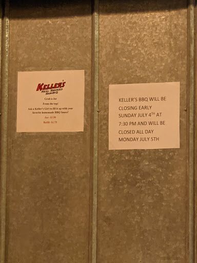 Have been eating at Kellers for over 15 years. Loved the food, enjoy the cozy atmosphere and the service is always great; True, as other reviews posted, its a little run down and maybe not the cleanest, but Ive always felt at home. Unfortunately the last two visits, including today, the food has been very disappointing. The brunswick stew was mostly gravy (again) with very little stew and the pulled pork so dry, it was like eating shredded cardboard. Had to drench in bbq sauce to get it down. Sadly, I think it will be a long while before Ill be craving me some Kellers BBQ, but will certainly request a sample bite before ordering if I do... a tip for others as well. I gave 3 stars for the atmosphere, service and people. Less 2 stars for 2 not so good meals and waste of $.