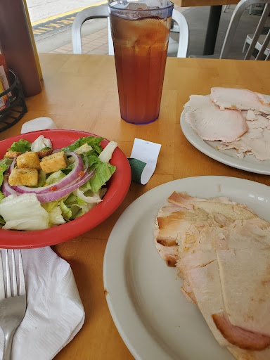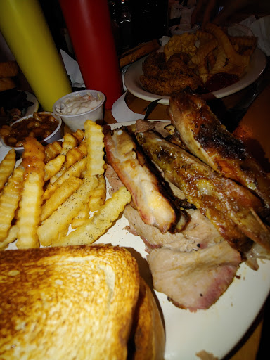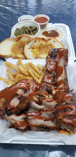 This is barely mediocre BBQ at best.. Only went here today (5/29/16) because 4 Rivers was closed.. Ordered the big feast meal for 3 of us...menu says you get generous portions of meat..this wasnt the case, I expected way more meat in the small aluminum pan they put it in..the meat was the only thing that was decent...the sides I got sucked.. Mashed potatoes had wayy to much butter and gravy didnt taste good which Im sure it was made from a store bought gravy packet where should just add water, green beans were out of a can and had wayyyyy too much black pepper, baked beans were OK...the sweet bbq sauce looked and tasted like disguised ketchup and just didnt taste good..garlic bread was OK as it would be kinda hard to screw this up..my first and last time eating here...4 rivers has this place all the beat all the way around!!