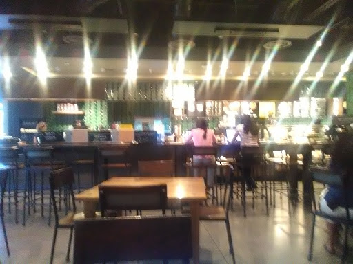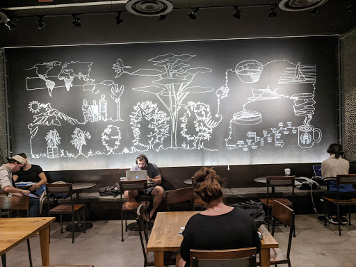 The design of the space is great, but they have several tables with the rocking problem that need fixing. Also usually Starbucks is nice and cool but lately it has been humid and warm inside which makes it hard for me to focus when studying. I mentioned it to them and 3. People gave me the boiler plate "there is nothing we can do about it" They at least need better air circulation in the space it feels stale.