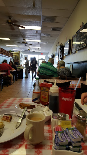 Great little place that serves breakfast and lunch. Breakfast specials are priced amazing$4.50 for several eggs, two bacon, sausage or ham, a nice serving of your choice of hash browns, home fries or grits and big fresh biscuits with real butter and jam. The coffee is excellent and the waitress staff really stays on top of all tables its a collaborative effort which is very refreshing. They do have a elaborate menu of home cooking breakfast they have custom and specialized large omelets, as will as pancakes and both thin and brioche French toast that are well prepared as well. Its small, but charming and always busy but never uncomfortable or loud.