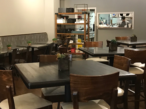 The restaurant is clean and the seating comfortable. The food was fresh and tasted good. The service was far under par. To be served, you order at a counter and the food is brought to you. This is not evident though there are no signs which say seat yourself, or order here. This may be an obvious practice on a busy lunch shift on a weekday, but yesterday, mothers day at 2:30 it was not busy at all. We stood in the doorway for about 4 minutes, with no acknowledgement, no hi, no welcome, no seat yourself, no smile, no pleasantry of any kind. We made our way to a table, I excused myself to go out and meet the rest of our party, no one approached my friend seated at a high top to instruct him or inquire if he wanted anything. When the party got there and went to order, the staff members stood at the counter looking at a cell phone rather than engage in conversation or invite us to place an order. When we left no-one looked up to say goodbye. My son complemented the food, and since no-one looked vested enough to bother expressing my disappointment in the lack of hospitality in a hospitality industry establishment, I bit my tongue and left. I will not go back; I will not recommend the restaurant.