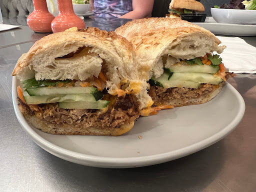 Had the egg, spinach, pesto, and goat cheese breakfast panini. Fabulous. Loved that there was a table of knitters at one end of the restaurant, couples having breakfast in the middle, runners from the morning fun-run 5K outside and young families sitting inside near the door. Its a place that works well for people of all ages and stages. Staff was friendly, helpful, and full of smiles.