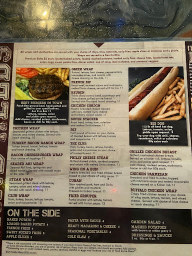 The food used to be very good for a sports bar but I think they are under new managment and the quality has quickly diminished. I order burgers medium they always comeback well or under cooked to the point it gets sent back. Orders often missing toppings described on the menu.