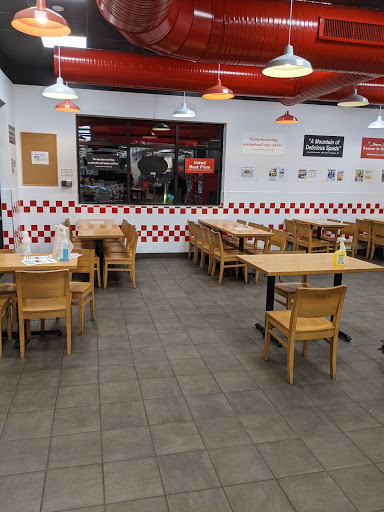 We have a couple of 5 guys near where I live in Maryland and know how excellent the food can be; we were starving after driving 22 hours but this was a total let down, the counter person was cold, the large fry wasnt a bag full of frys, just a cup and a handful more in the bag and the burger wasnt even hot. Id rather go to Wendys then this particular 5 guys.