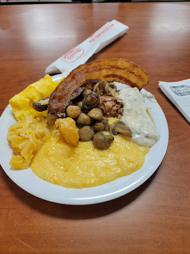 My daughter & I went last Saturday morning around 10:30 a.m. for breakfast and I worried about long lines, but we walked right up, ordered, found a table and were eating right away. I ordered a special made omelet just like I like it & that anywhere else would be an charge extra for what is the norm for them. On our visit it was clean & the staff was courteous. Reasonable prices for their large buffet.