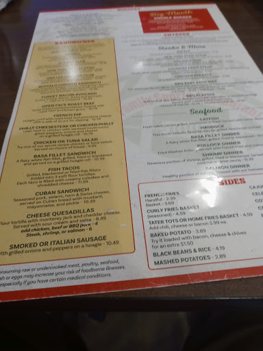 Very very good food and service. My husband and I go there often and we love it. The wings are awesome and they also have great steaks. Salads are huge and very fresh, good sandwiches, two for one drinks. Good environment, family oriented. There is a bar but its not a rowdy, loud place. Very resonable prices, friendly people.