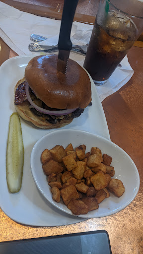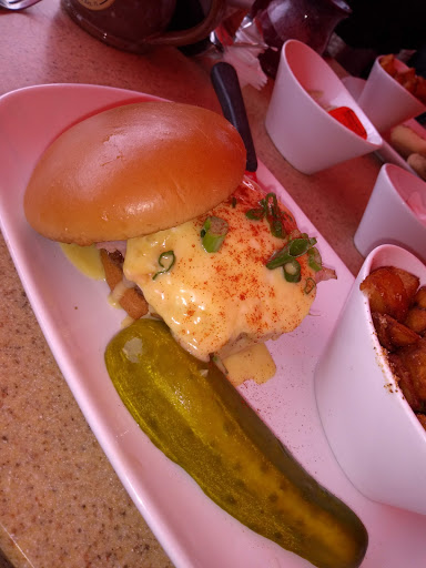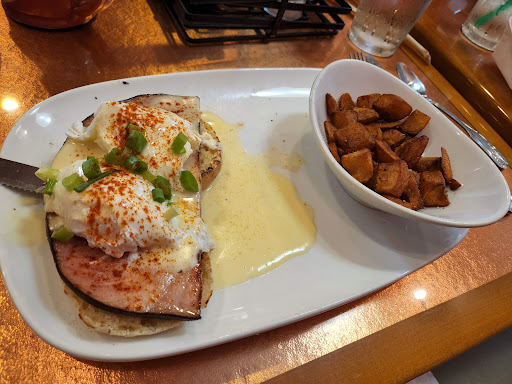 Great decor. High quality ingredients. Beautiful large covered outdoor patio, and interior cozy martini bar up front. We work nearby and have been here well over a dozen times and never was there anything less than wonderful food on our plates. I have to be suspicious of people with only 1 or 2 super negative reviews. Looks like they have ulterior motives. Try their eggs Benedict once and decide. Half a slab of ham steak under perfectly poached eggs with a delightful freshly made sauce. Another recommendation, the Cafe burger ( indulgent) Thick strips of bacon wonderful gourmet rolls. The burgers are large. Santa Fe burger is excellent and not quite as heavy as the Cafe burger. My friend raves about the black bean burger. I have not yet tried. All burgers served on skillets with generous portion of nicely seasoned potato cubes