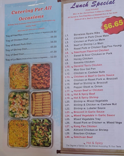 Thank you for english speaking helper. Food is always quick hot..and as fresh as can be from chinese take our. Always nice workers. Usually steady busy with customers.