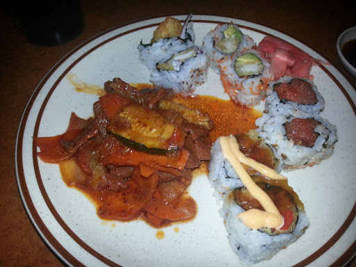 The food here is pretty good. The steak and chicken hibachi dinner is very filing and comes with the traditional miso soup and salad. The soup had tofu which I didnt care for but it was still good. The salad is simple lettuce with very few carrots. They arent cheap with the dressing which I think is awesome. The hibachi dinner itself has good size portions of steak and chicken along with the vegetable medley and fried rice. The rice wasnt clumpy nor where the vegetables overdone. You could taste how fresh the vegetables were. My friend offered the tempura and she said she was surprised at the amount of food and how tasty it was. All in all, its a place worth going to again.