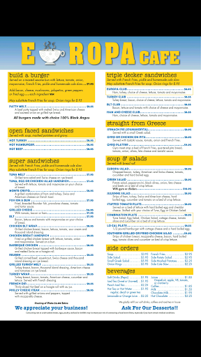 Europa is a great local, family owned/operated restaurant. Youll get a friendly greeting and great service, with a good variety on the menu. There is something for everyone!