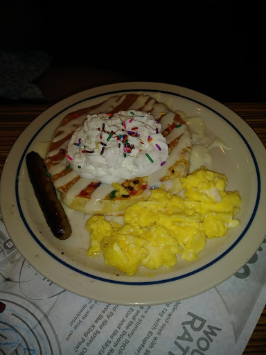Server was great! We ordered scrambled eggs and both orders were still really runny. We asked to get new ones cooked a little more. She brought them out and at first they looked ok but after eating a bite my husbands were still runny. Whenthe waitress noticed he still wasnt eating them she insisted we let her get another out. We didnt want to be a bother but she wanted to make it right. She brought out a third order and they were perfect. The manager even took his meal off the bill. Another server was kind enough to give us directions to a walmart and a shooting range we were looking for. After leaving that same server ran out our daughters sippy cup she left. Great friendly staff there!