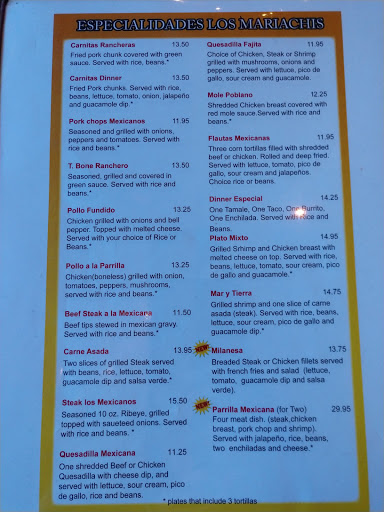 Great food and great service... sorry i dont have an image my phone died while i was there but the queso was amazing like you can taste the cheedar and their burritos are supreme. I love the interior design and sure the outside looks ok but the inside is beautiful. They have an indoor fountain and the waiters are kinda like that one good friend that you hangout with. So my final review of los mariachias is a 4/5 great place if you are feeling for mexican and a awesome place for the family just during the weekdays. And if you want to party friday nights i hear is the bomb! Los mariachia is los (the) bomba when it comes to food.