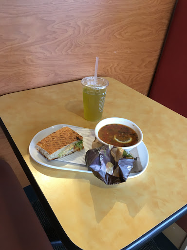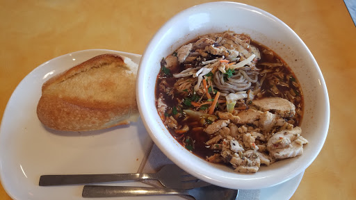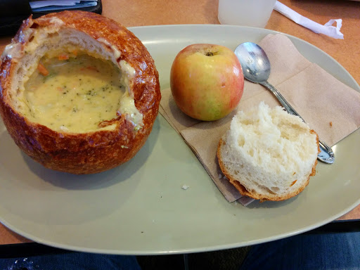 Its Panera. Its a chain. And they have pretty good healthy, vegetarian and gluten-free meals available, not to mention proper fresh baked bread. You almost cant go wrong eating here (if you like their offerings).