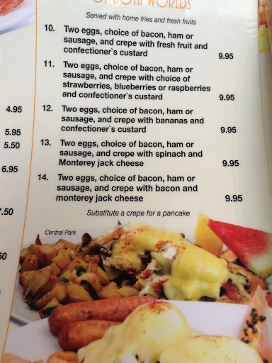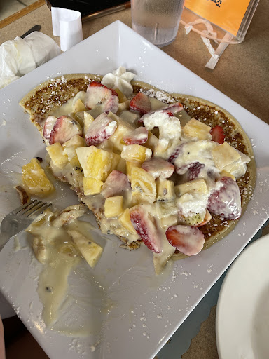 Best breakfast in town! Huge omelettes. Creative Eggs Benedicts. Enormous menu. But hands-down the most scrumptious waffles, crepes and french toast covered with at least 14 different varieties of fresh fruit and english cream!