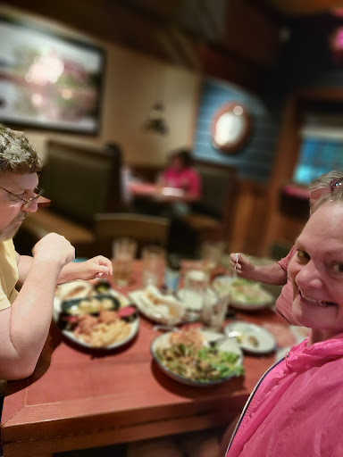 Our server was Jessica R. She was working the bar which only had one lady who was also equally disappointed and angry at the server. We were never asked what salad we want or what dressing we had to bring it up to her and she basically chose for us. It took about 10 mins for her to take our order and then an additional 10 mins to get our bread which was a stale crumbly mess. Once we had our order placed her relatives and friends came in and she focused solely on them gettting them fresh bread and drinks immediately the lady at the bar left angry because her and I had to wave her away to get her help. Once we did get our food it was good but all we kept hearing was our serving telling her friends how some food wasnt fresh and how the soups are preportion and microwaved. The server continually played loud videos off her phone and then when she realized our drinks were out she had another server assist us. This was my husband and I first visit at this location and for $70.00 i would hope for better service or at least the quick friendly service with a manager visit that her friends got!