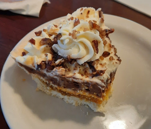 Good food, service and price. Early bird (3pm-6pm) specials are a great value. This particular day, I had a really good steak with baked potato, green beans dinner. It came with soup (navy bean is what I got, awesome) or salad, unlimited bread and butter, and a piece of pie (any pie on the menu). I am never disappointed eat here.