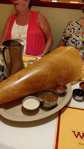 One of the few places you get "south" Indian food in Florida. Or else all over you have standard north Indian items repeated sickeningly all over the region leaving no room for any creativity. We drove 14 miles one way from Fort Lauderdale just to get dosa. The place is very spacious, medium seating and is a little old. In a quiet place with shops. Gobi manchurian was soaked in tomato ketchup and almost dripping with sauce. They clearly dont know how to make gobi Manchurian. We got a nice crispy set of dosas extending both side of the plate. Smelt nice but when we tasted it the batter needed maybe another 4 hours of fermenting. Generous amount of onions and masala. Florida with so many coconut trees but coconut chutney tasted like it was made from frozen coconut powder. Tomato chutney was a disaster. Tasted identical to tomato soup. We thought they used left over tomato soup from afternoon for tomato chutney. Dosa could have been better with less oil as it left a bad oily after taste in the tongue. Left with a realization that another 50 years and you will never have Indian food in USA tasting like in India. Why ?! Question mark remains.